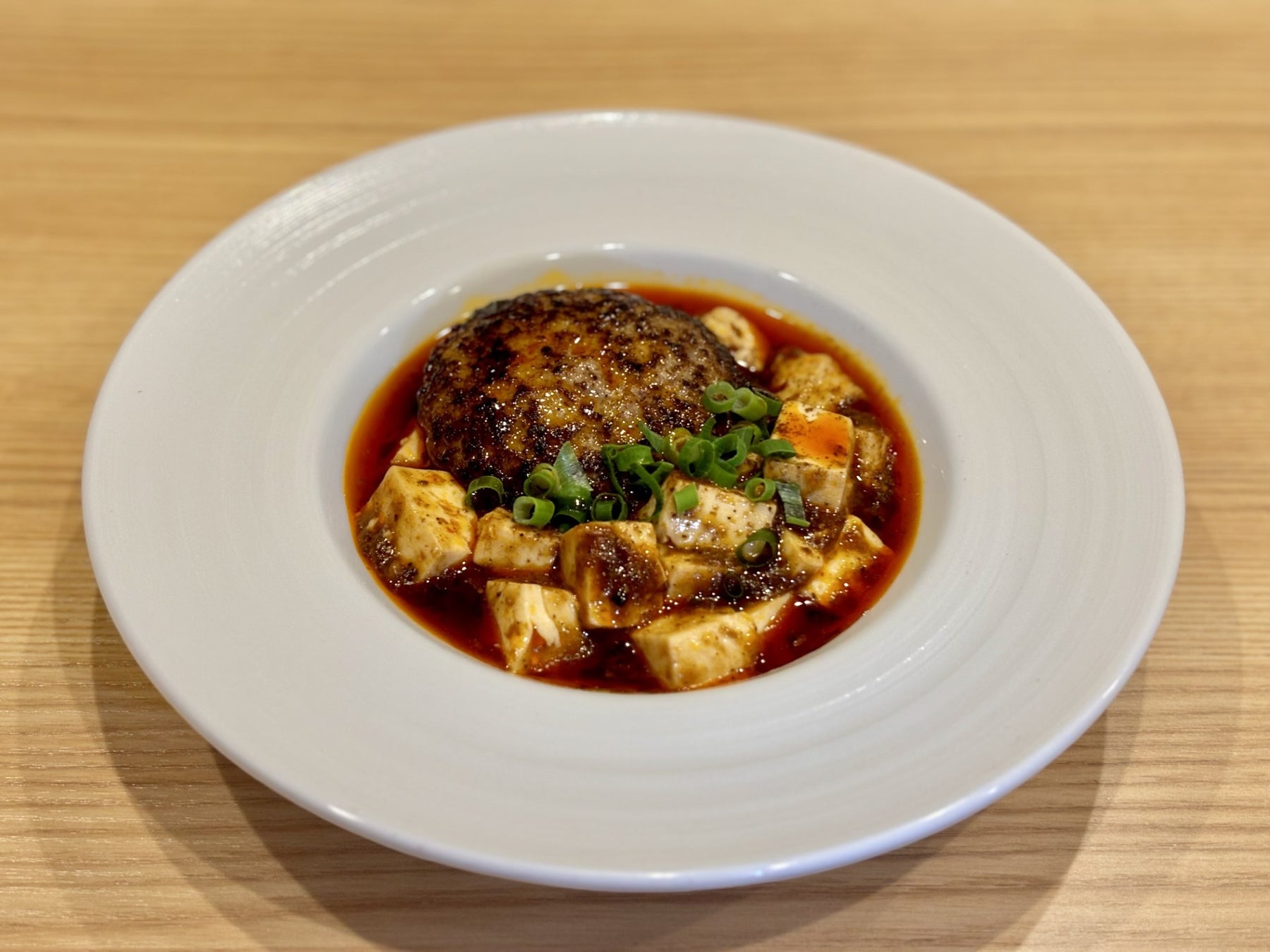 つくばのガチ中華、本格中国料理の店、<四川料理・麻辣十食>。30年間、四川で料理の経験を積んだ料理長が選び抜いた食材・香辛料を使い、本場の味を出しながら地産地消を心掛け、皆を幸せにするようにと美味しい料理を作っています。「格之進金格ハンバーグと麻辣十食オリジナル麻婆豆腐」の格之進金格ハンバーグは、国産牛肉と、岩手県が誇るブランド豚「白金豚」を中心とした国産豚を使用。こだわり抜いた材料と技術で仕上げたハンバーグです。肉汁満載のハンバーグと自慢の麻婆豆腐が合わさった、オススメの一品です。