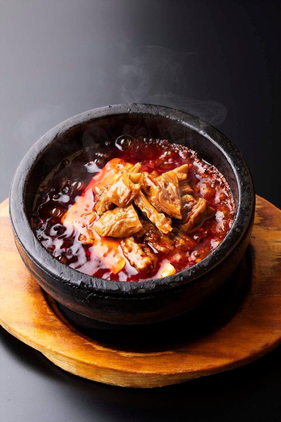創業1995年、赤坂の激戦区から挑戦を始め、数々の試行錯誤の末に看板メニューを生み出してきた<陳家私菜(チンカシサイ)>は、進化し続ける四川料理を追求する本格中華料理店。伝統を守りつつも、日本人の嗜好に合わせた繊細なアレンジを施し、常に新しい魅力を創り出しています。<陳家私菜>といえば、石鍋を使用した独自のスタイルで人気を博しているシグネチャーメニュー「頂天石焼麻婆豆腐」。特製の豆板醤と山椒が織り成す深い辛みと痺れる香りに、コクと旨味が絶妙に融合しています。「頂天ホルモン麻婆豆腐」は、そんな「頂天石焼麻婆豆腐」にホルモンを添えた特別な一皿。ホルモンの旨味と熱々のラー油タレの組み合わせは絶妙です。