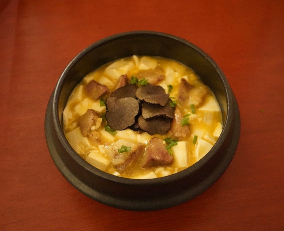オーナーの「梁宝璋」氏が「美味しい地元の味を日本の皆さんに広めたい。」という熱い思いから、2000年に神田で誕生したお店<味坊>。中国東北料理をベースに羊肉要素を加え、親しみやすい中華料理店を目指し続けています。「トリュフ添え和牛麻婆豆腐」は「食卓のダイヤモンド」と称されるトリュフと、豊かな脂身の和牛を併せた贅沢な一品。トリュフの豊かな香り、和牛の旨味、豆腐の滑らかな触感が一度で楽しむことができる特別な麻婆豆腐です。