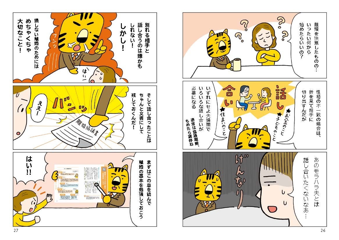 本書に協力いただいたのは、弁護士の服部弘先生と、離婚カウンセラーの岡野あつ子先生。本書内では親しみやすいキャラクターで登場!ベテランならではの豊富な知識と、離婚する人に寄り添ってくださる温かい視点で解説しています。