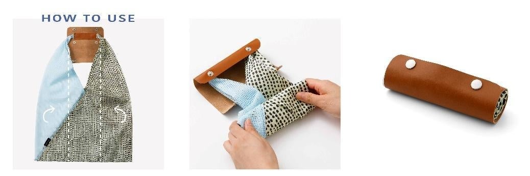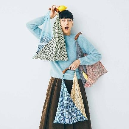 西洋のバッグにあこがれた江戸の庶民が風呂敷などを縫って作ったアイテム、あずま袋を丸めて気軽に携帯できるようにしたバッグです。柄生地にメッシュの切り替えを組み合わせ、生地が重なった部分にはポケットをつけました。ふだんの買い物に旅行にサブバッグに、さまざまな場所で活躍するあずまかばんです。