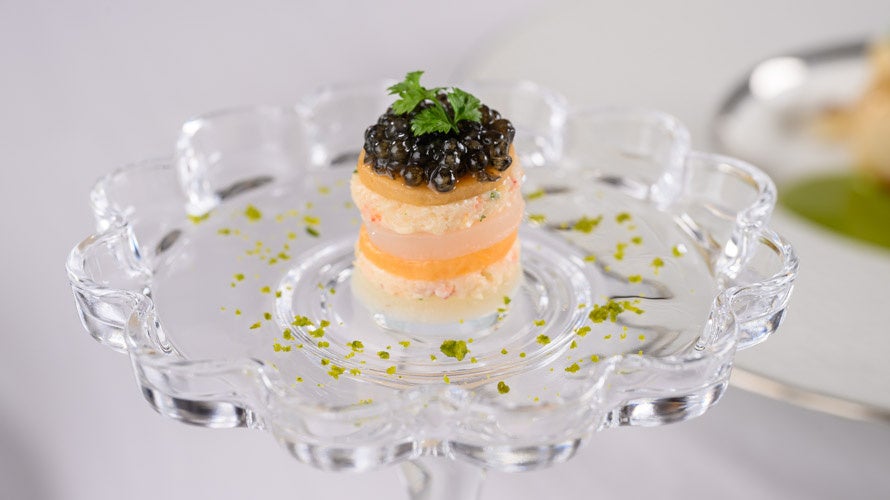 ミルフィーユ仕立てにして、キャビアを飾りました。
