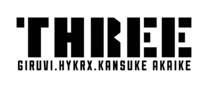 日本を代表するステンシルアーティスト、GIRUVI(ギルビ)・HYKRX(ヒャクラク)・赤池完介の3人が「THREE(3)」をテーマに独自の解釈で作品へのアプローチを試み、キャンバスだけでなくアパレルや家具など、それぞれのスタイルやテクニックでアートの多様性と表現の可能性を探ります。
