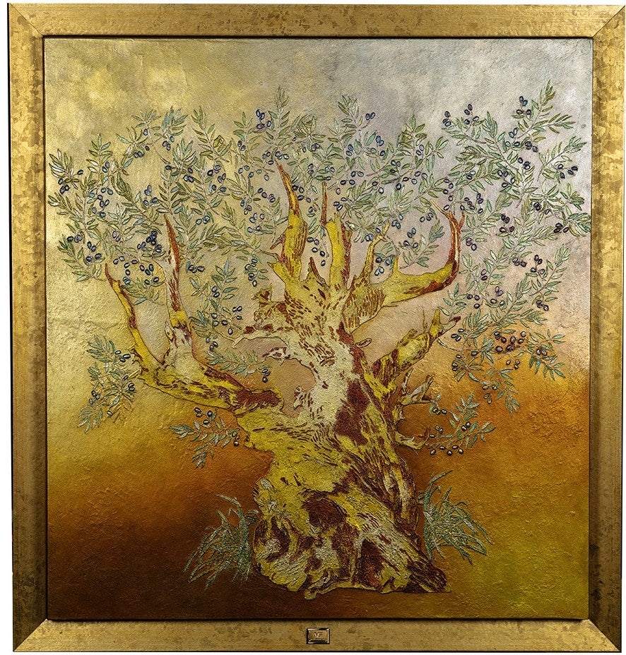 純金や銀彩など希少なマテリアルを巧みな技術により油絵具と調合。独自の技術で描いた「絵画の金細工師」と称される作品をご覧ください。