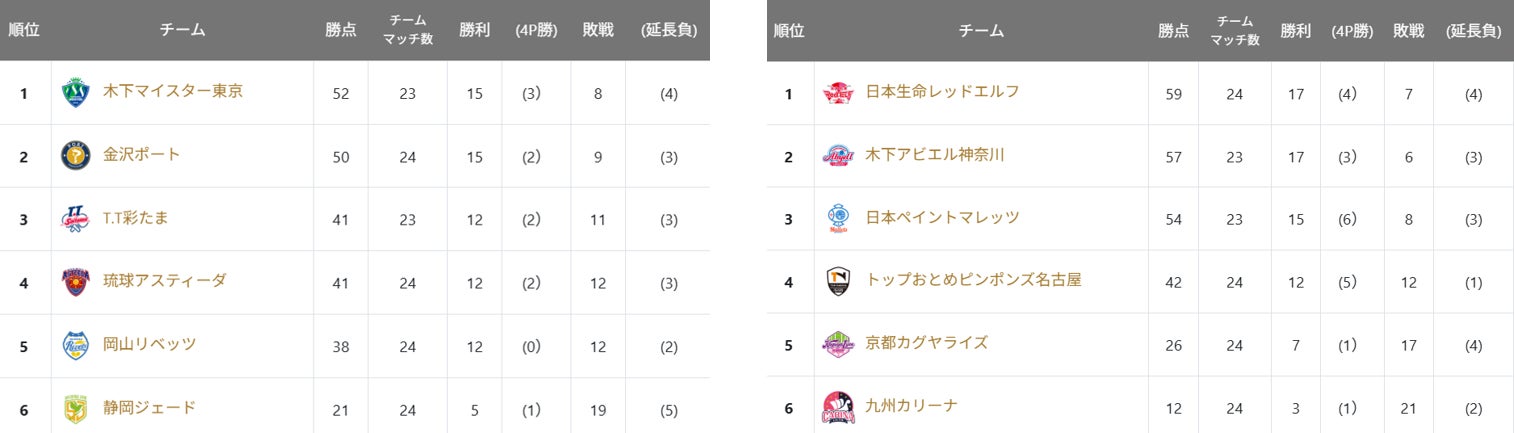 男子:https://tleague.jp/ranking/