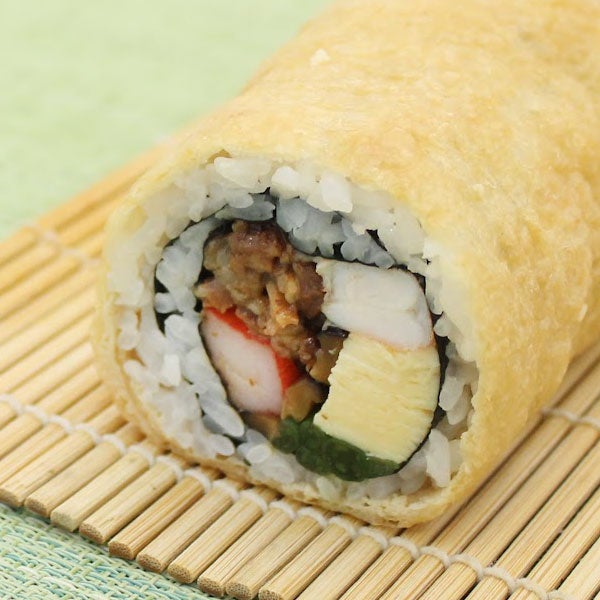 国産牛肉、海老、玉子焼きなどをお揚げでくるりと巻きました。