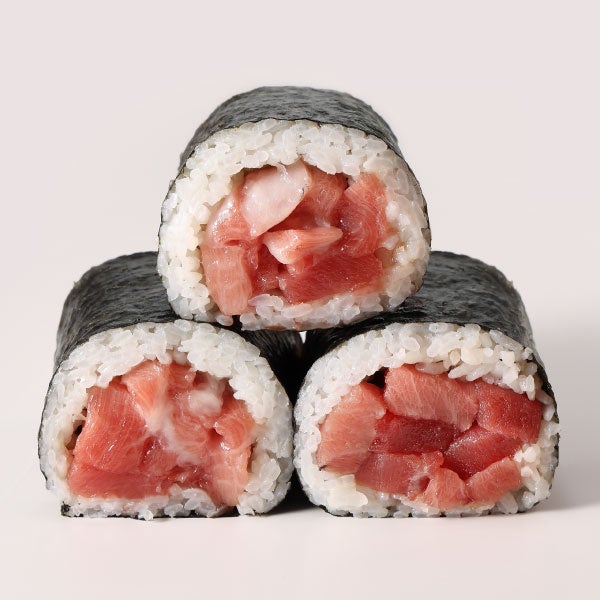 まぐろ大とろ・中とろ・赤身を1本の太巻きにしました。
