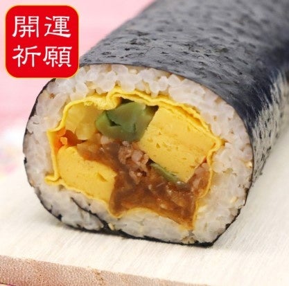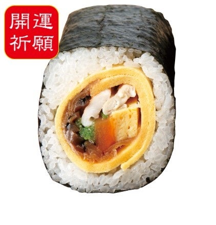 だし巻き玉子、煮穴子、干瓢、椎茸、三つ葉など具材をたっぷり使用した恵方巻。