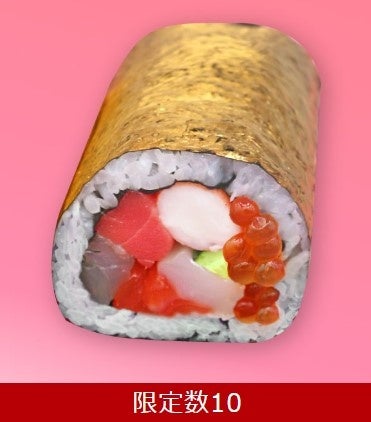 まぐろ・サーモン・海老などが入った海鮮太巻を金箔で巻きました。豪華で縁起のいい恵方巻です。