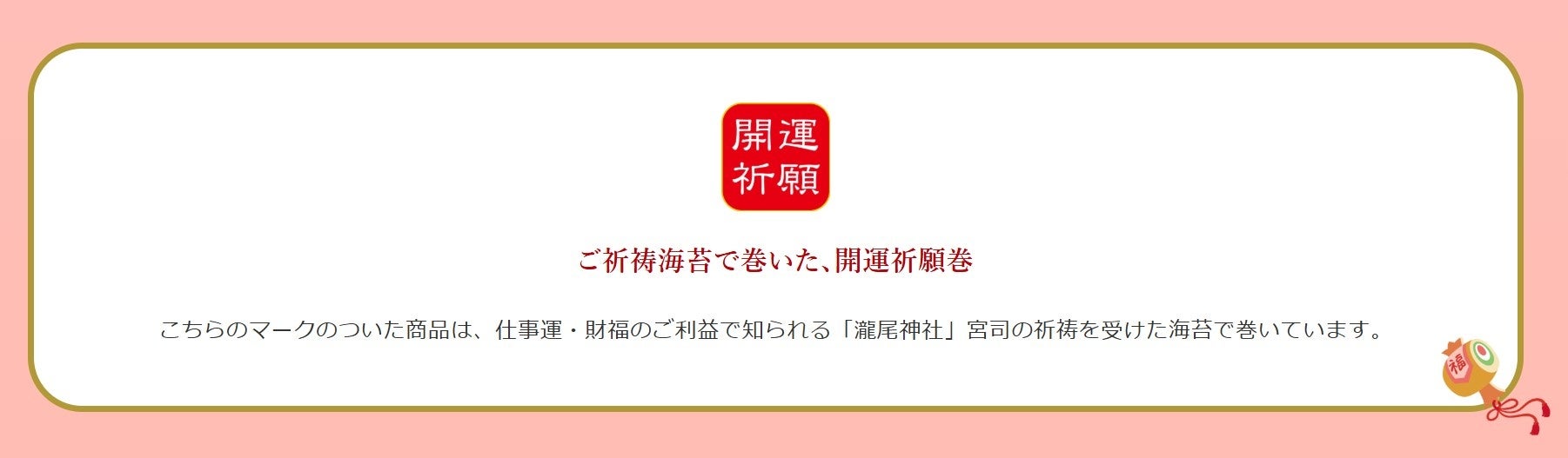 仕事運・財福のご利益で知られる「瀧尾神社」宮司の祈祷を受けた海苔で巻いた恵方巻も!