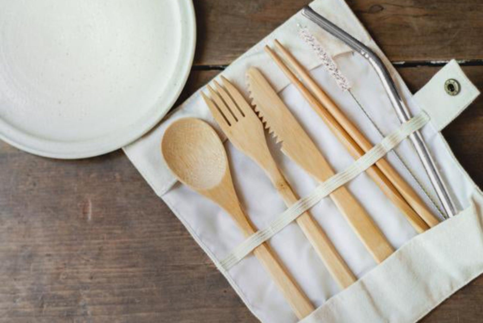 どんなシーンにもなじむシンプルなデザインのカトラリーセット。使い捨てのストローやフォークなどを使わないことは、プラスチックの削減にもつながります。