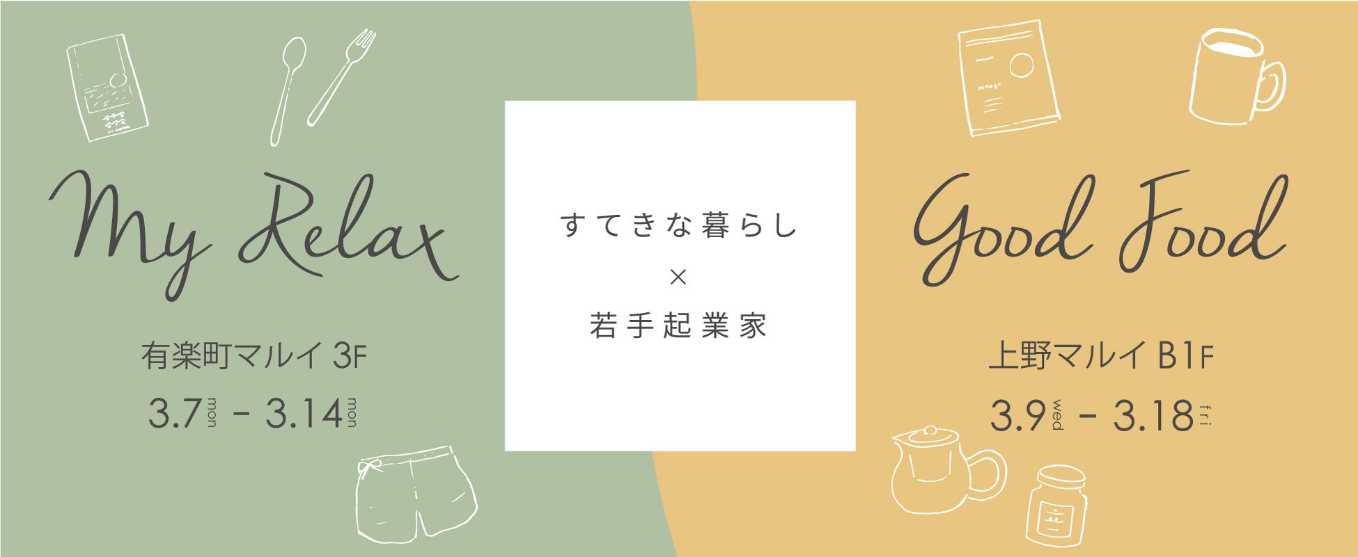 株式会社丸井(本社:東京都中野区、代表取締役社長:青野 真博)は、有楽町マルイ、上野マルイにて、若手起業家とタッグを組み「暮らしをちょっとすてきにする」POP UPイベントを期間限定で開催いたします。3月20日(日)の「国際幸福デー」にちなみ、有楽町マルイでは『My Relax』、上野マルイでは『Good Food』、「リラックス」「食」のカテゴリーでこだわりの品々を取り揃えています。