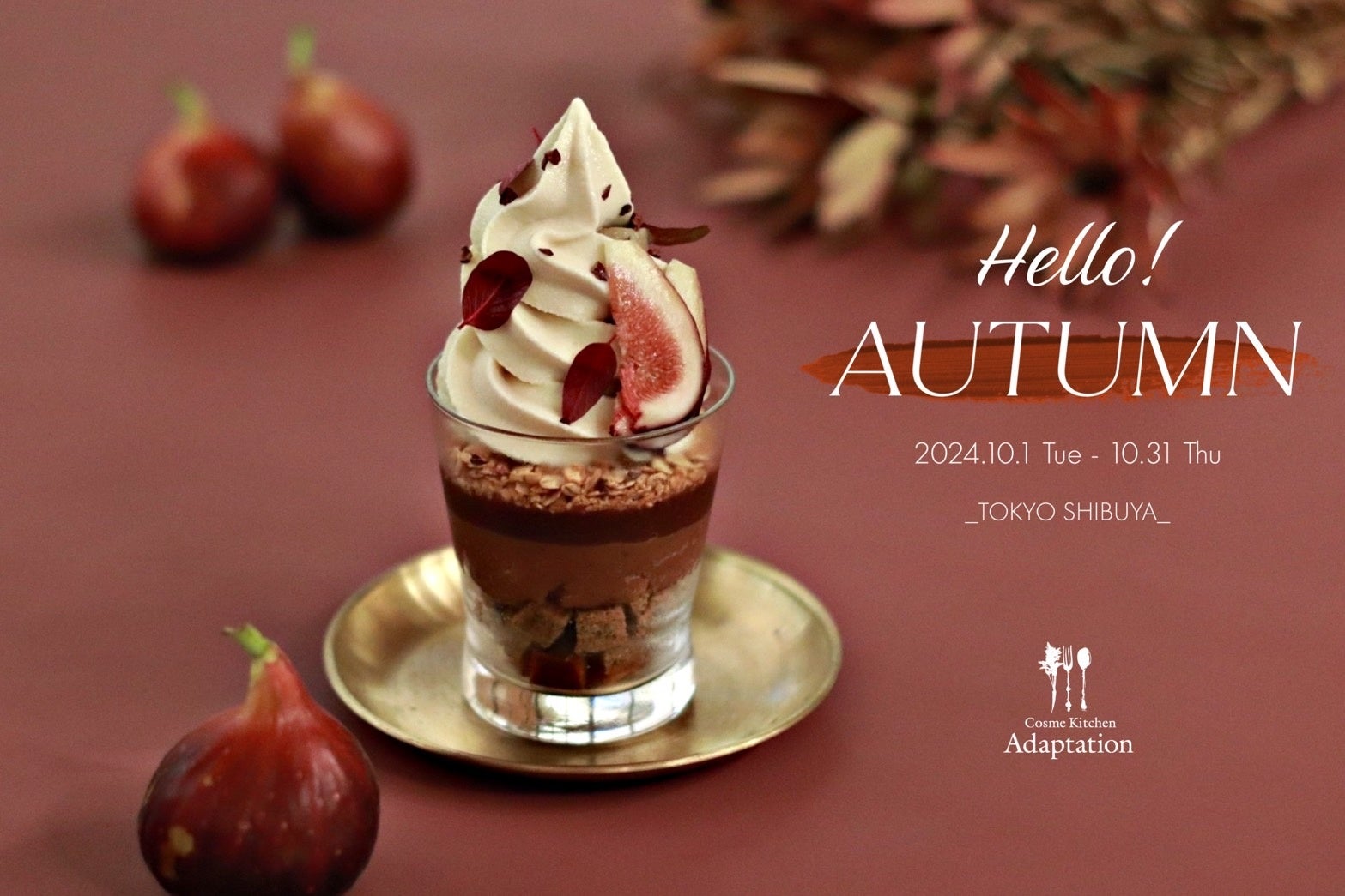 株式会社マッシュライフラボ(代表取締役社長:満塩雅一、本社:東京都千代田区)が運営するCosme Kitchen Adaptation(コスメキッチン アダプテーション、以下Adaptation)渋谷ヒカリエ店は、10月1日(火)より、香り高いほうじ茶のヴィーガンソフトクリームをベースに、モンブラン、いちじく、アールグレイ茶葉使用の米粉ケーキを贅沢に重ねた、渋谷店限定の特別な秋パフェを提供いたします。