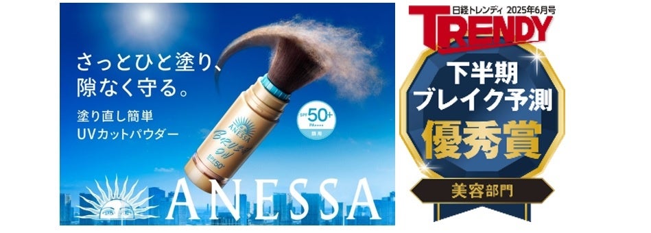 日焼け止めブランド「アネッサ」から、今年2月に発売した新発想のブラシ一体型のUVカットパウダー「アネッサ パーフェクトUV ブラッシュオンパウダー」※1が、2025年6月3日に発表された「日経MJ」の『2025年上期ヒット商品番付』で<東の小結>を、また「日経トレンディ(2025年6月号)」の『2025年上半期ヒット大賞・下半期ブレイク予測』にて<美容部門 下半期ブレイク予測 優秀賞>を受賞しました。