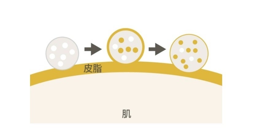 皮脂吸着パウダーには無数の孔が存在。球状で多孔質なため、皮脂をよく吸着する、サラサラな使用感。