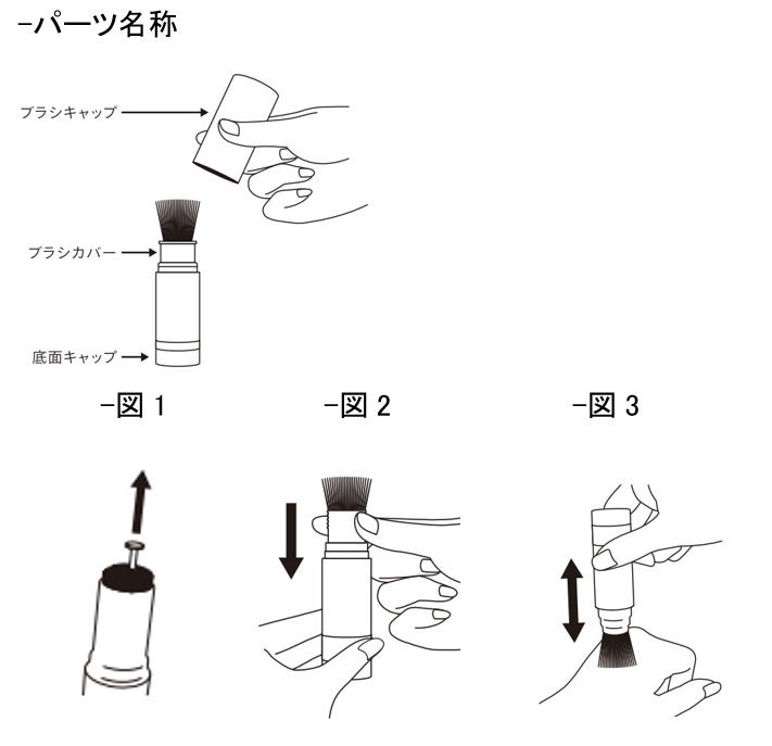 ③ブラシ先端にパウダーが出てくるまで、手の甲、またはティッシュペーパー等にブラシをあて軽くトントンとたたき、十分にブラシにパウダーを含ませます。(図3)