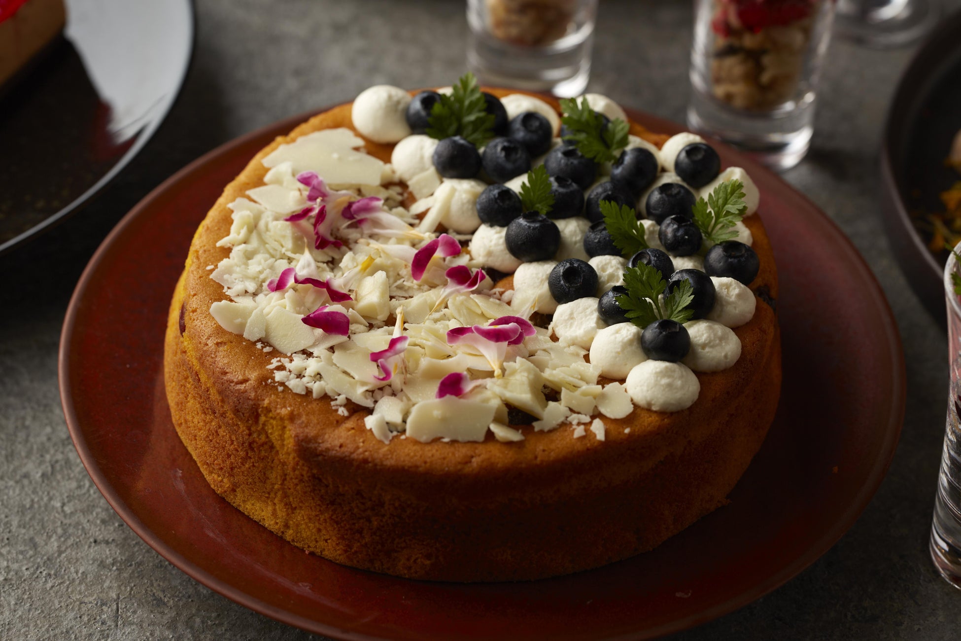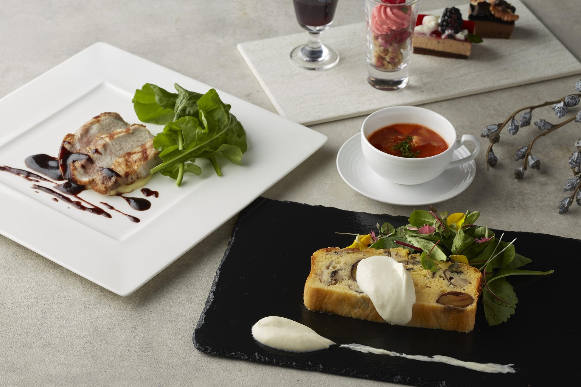 レッドカラーのアクセントが美しいデザートブッフェ付き、秋と冬の味覚を一度に堪能できるカスタマイズランチコース