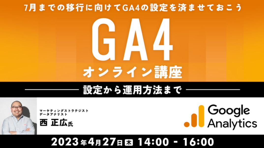 【先着10名】セミナーに参加してGA4のややこしい設定を済ませちゃおう!4/27(木)「GA4オンライン講座~設定から運用方法まで~」