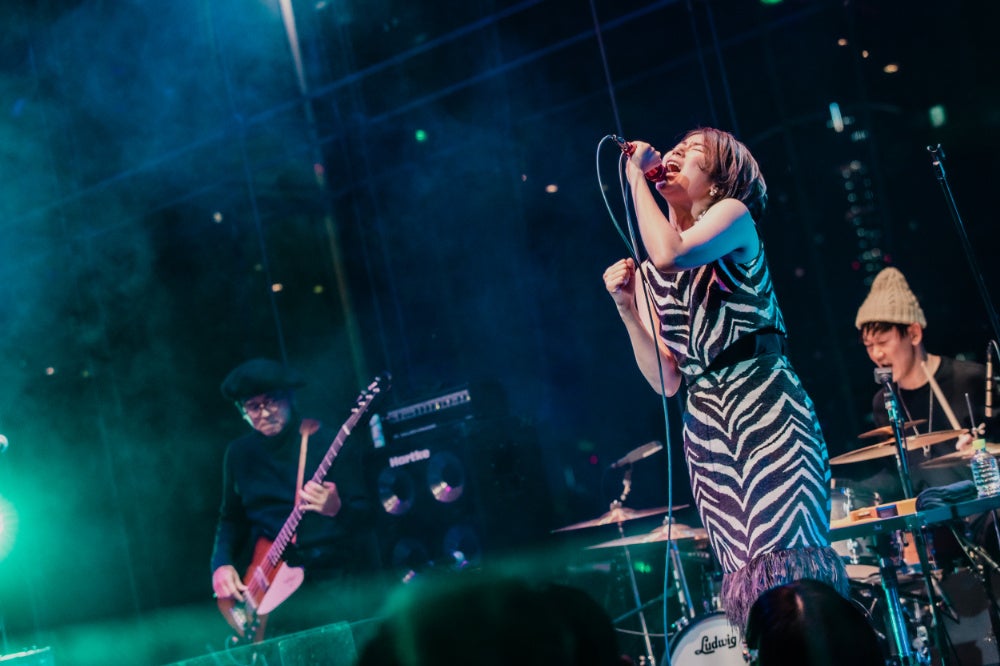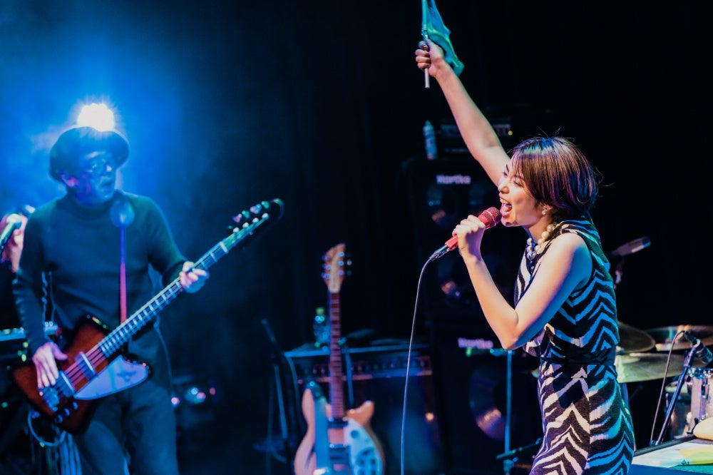 間髪入れずに披露した最新アルバムのリードトラック「Victoria」では、清浦夏実の伸びやかなボーカルと、沖井礼二の新機・サンダーバードのメロディアスに踊るベースフレーズ、”沖井節”の光るファッショナブルな楽曲でファンを魅了した。