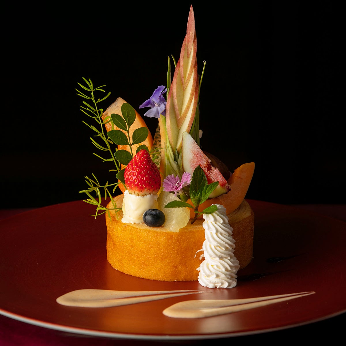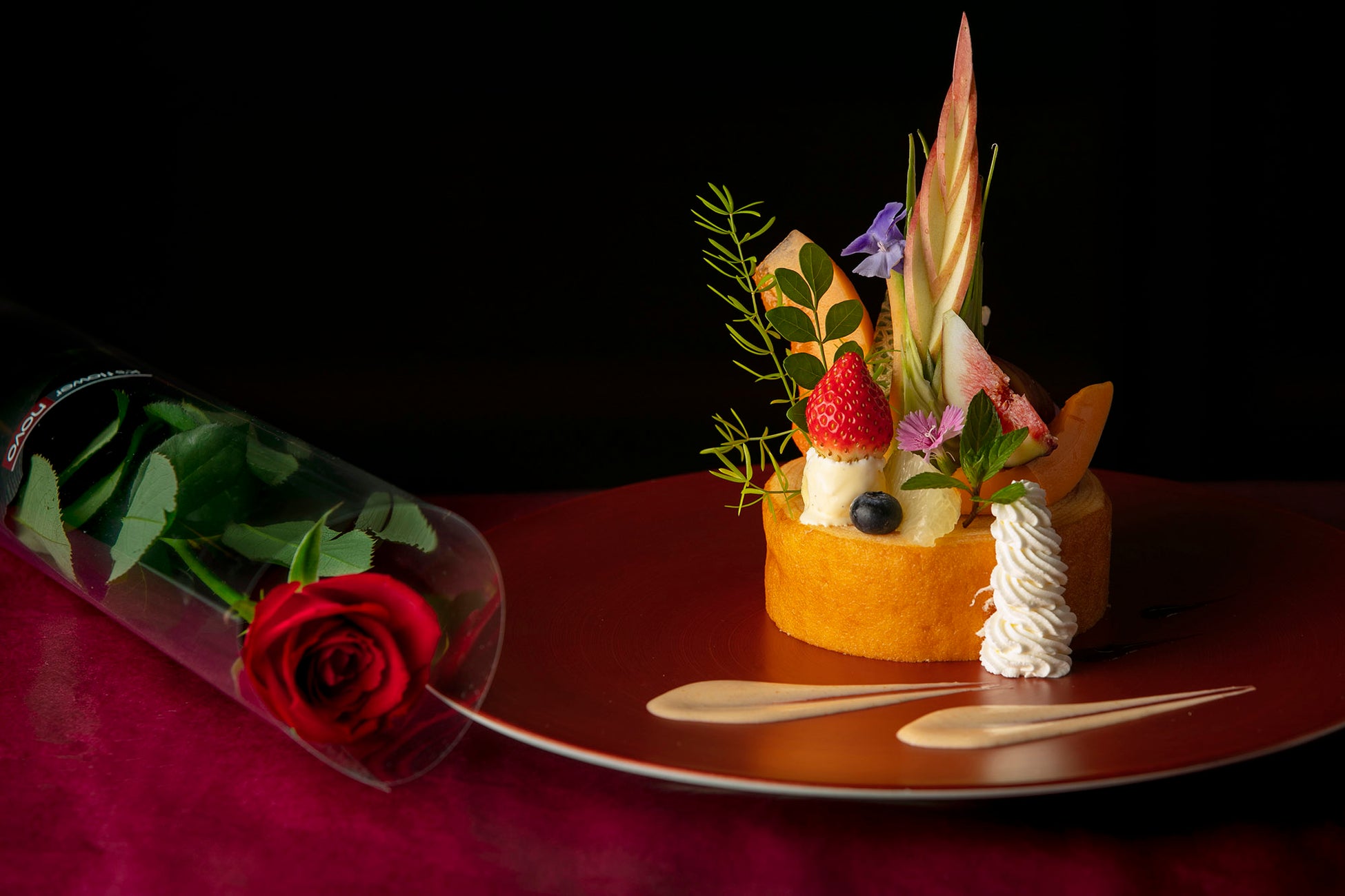『いい夫婦の日プラン』は、11月のランチコースおよびディナーコースの一部のメニューをアップグレードする期間限定の特別プランです。コースのデザートを“おふたりが末永く年を重ね、幸せをいつも仲良く分かち合えるように”という願いを込めたバウムクーヘンのシェアプレートへと変更し、大切なパートナーに感謝を伝えるアイテムとして一輪のお花をプレゼントいたします。フルーツの飾り切りとクリームで彩られ、まるでフラワーアレンジメントのように美しいスペシャルデザートは、記念のテーブルのフィナーレに相応しい一品です。お名前やご希望のメッセージをお入れすることも可能です。