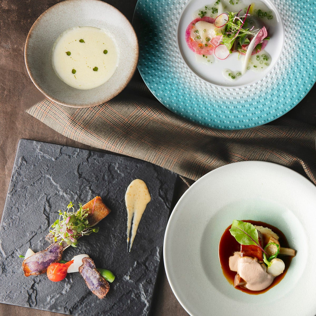 style kitchenでは、フレンチをベースに、旬の味覚に名古屋ならではのアレンジを加えた料理の数々をご提供しています。繊細かつコンテンポラリーでありながら、ご家族やご友達を誘いたくなるような気取りのない創作料理が特徴です。ランチおよびディナーは隔月ごとにメニューを一新し、11月1日からは新作をお楽しみいただけます。