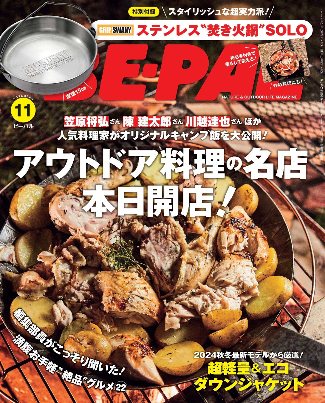 2024年10月9日発売、BE-PAL11月号の特別付録は、BE-PAL初の “鍋” 付録。アウトドアグローブの人気ブランド、GRIP SWANYとコラボした『ステンレス “焚き火鍋” SOLO』。深さ3.5cmあるステンレス製で、鍋料理はもちろん炒め料理や食器としても使いやすい持ち手付き。焚き火にトライポッドを使って吊り下げればワクワク度爆上がりですよ!