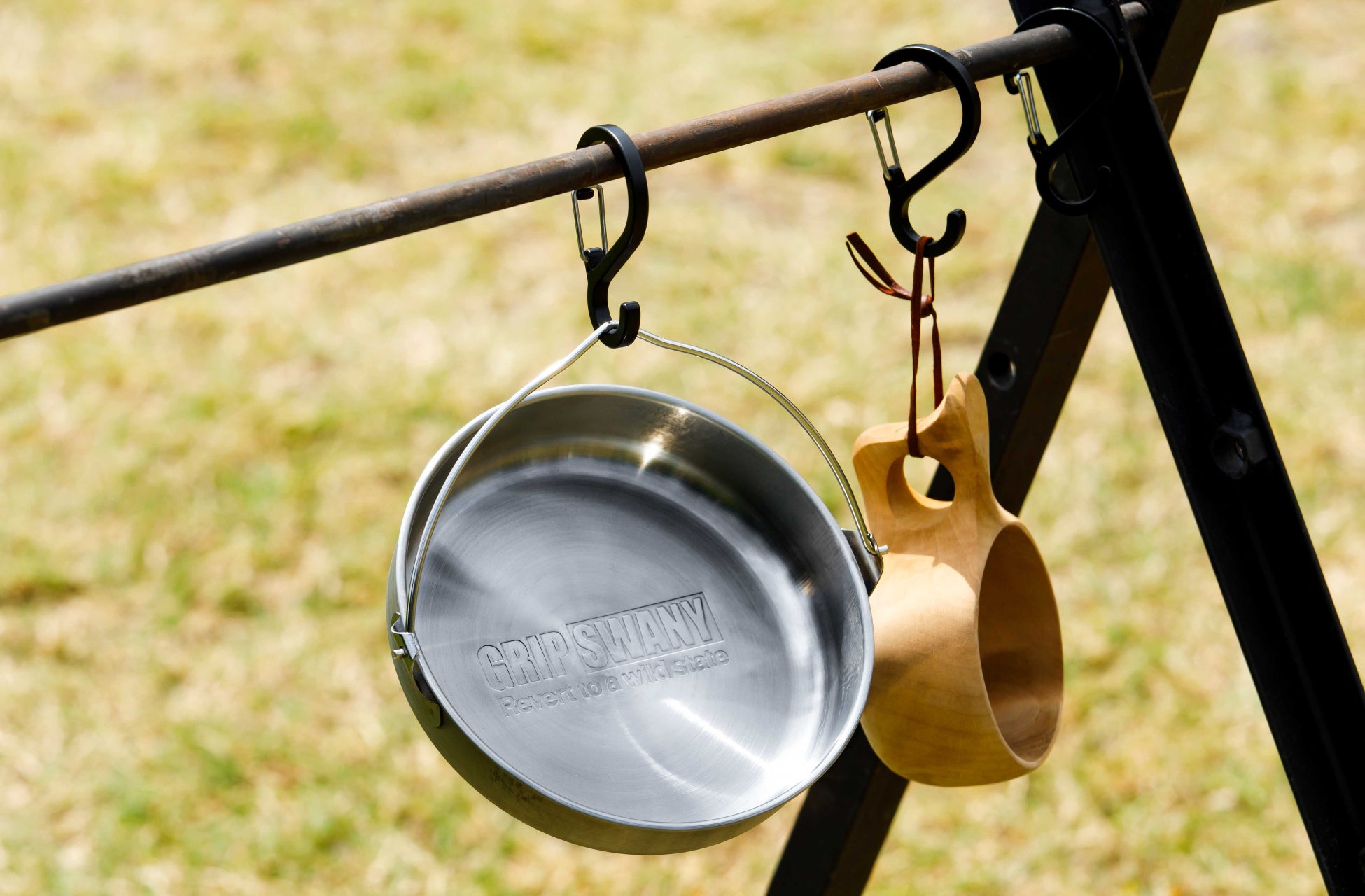 170年の歴史を持ち、スワニーイエローで親しまれているアウトドアグローブのブランド、GRIP SWANYのロゴが鍋底に刻印される。BIGポケットで人気の焚き火用ウェアと、お揃いで使うのもGOOD!