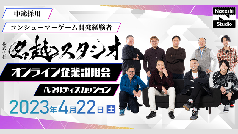 【ゲーム業界】デザイナーやプランナー、プログラマーなど、積極採用中!4/22(土)㈱名越スタジオの中途採用オンライン企業説明会&パネルディスカッション