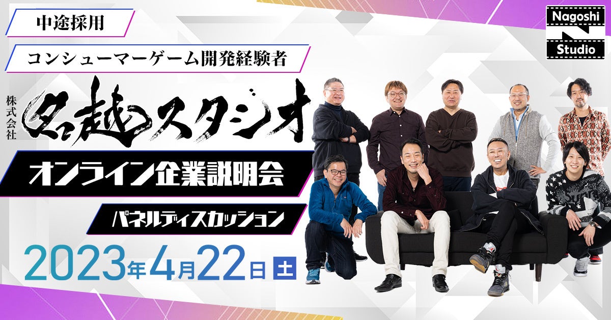 2021年11月、「龍が如く」シリーズで知られるゲームクリエイター・名越稔洋氏を中心に設立された名越スタジオ。同スタジオでは、ワールドワイド向けハイエンドタイトル開発のためにクリエイターを積極的に採用しています。このたび、C&R社では、立ち上げから1年が経過し急速に成長を遂げる同スタジオの、オンライン企業説明会とパネルディスカッションを実施することとなりました。本イベントは昨年9月に続き2回目の開催となり、前回のイベントでは3名の方のご入社が決定しています。