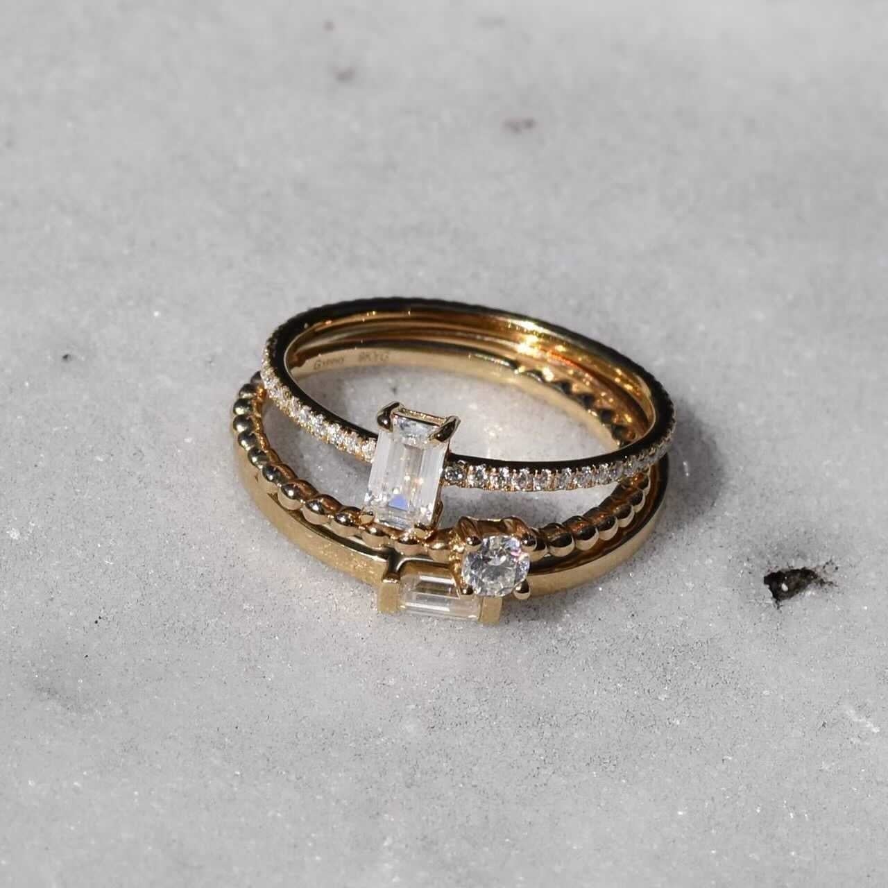 (下)シングルバゲットモアサナイトリング K10 ¥29,700(税込) K18 ¥46,000(税込)