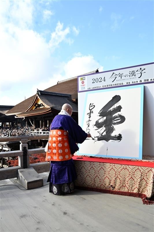北法相宗管長・清水寺貫主(きたほっそうしゅうかんちょう・きよみずでらかんす)の森清範和上(もりせいはんわじょう)による揮毫(きごう)のデモンストレーションと独演会