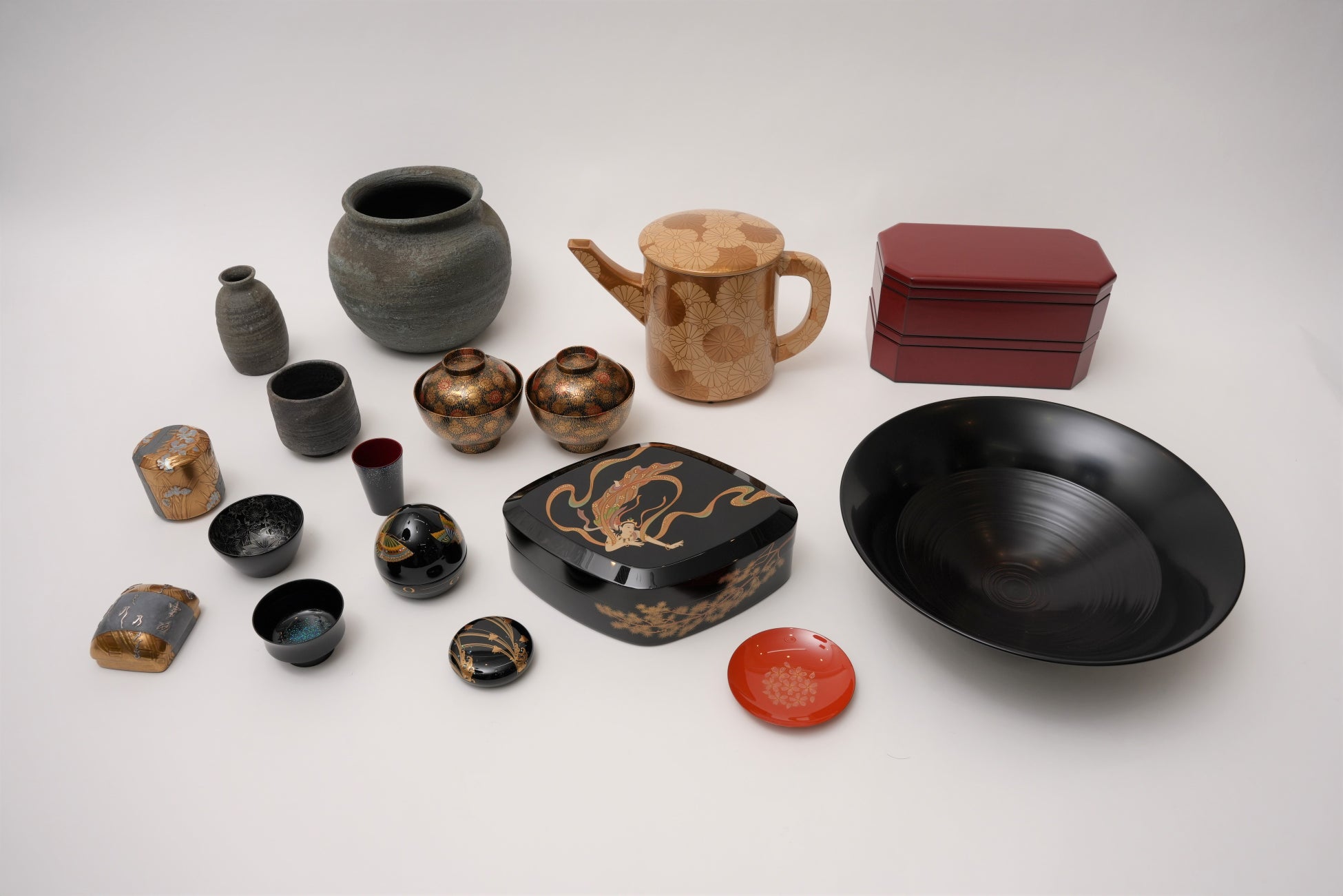 今回の企画では、そうした震災後に新たに制作された作品を中心に、輪島塗は約800点、珠洲焼は約50点もの品ぞろえを実現し、お披露目・販売いたします。