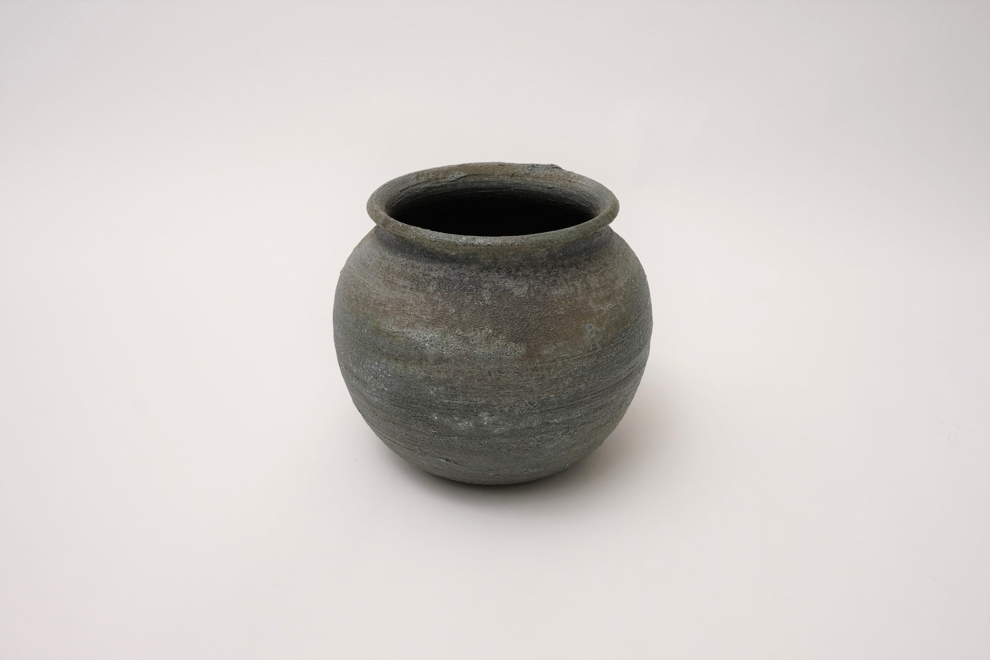 平安時代末期から室町時代後期にかけて珠洲市を中心に能登半島の先一帯(現珠洲市および旧内浦町)で生産された、中世日本を代表するやきものの一つです。室町時代に忽然と姿を消し、幻の古窯といわれた珠洲焼は1979年に再興し、1989年に石川県の伝統的工芸品に指定されました。そのつくり方は、古墳時代から平安時代にかけて焼かれた須恵器を受け継ぎ、窖窯(あながま)を使い燃料の量に対して供給する酸素の少ない還元炎焼成(かんげんえんしょうせい)で、1,200度以上の高温で焼き締めていくものです。火を止めた後も窯を密閉し窯内を酸欠状態にすることで、粘土に含まれる鉄分が黒く発色し、焼きあがった製品は青灰から灰黒色となります。