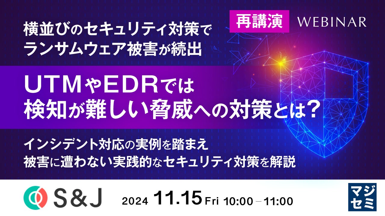 マジセミ株式会社は「横並びのセキュリティ対策でランサムウェア被害が続出UTMやEDRでは検知が難しい脅威への対策とは?」というテーマのウェビナーを開催します。