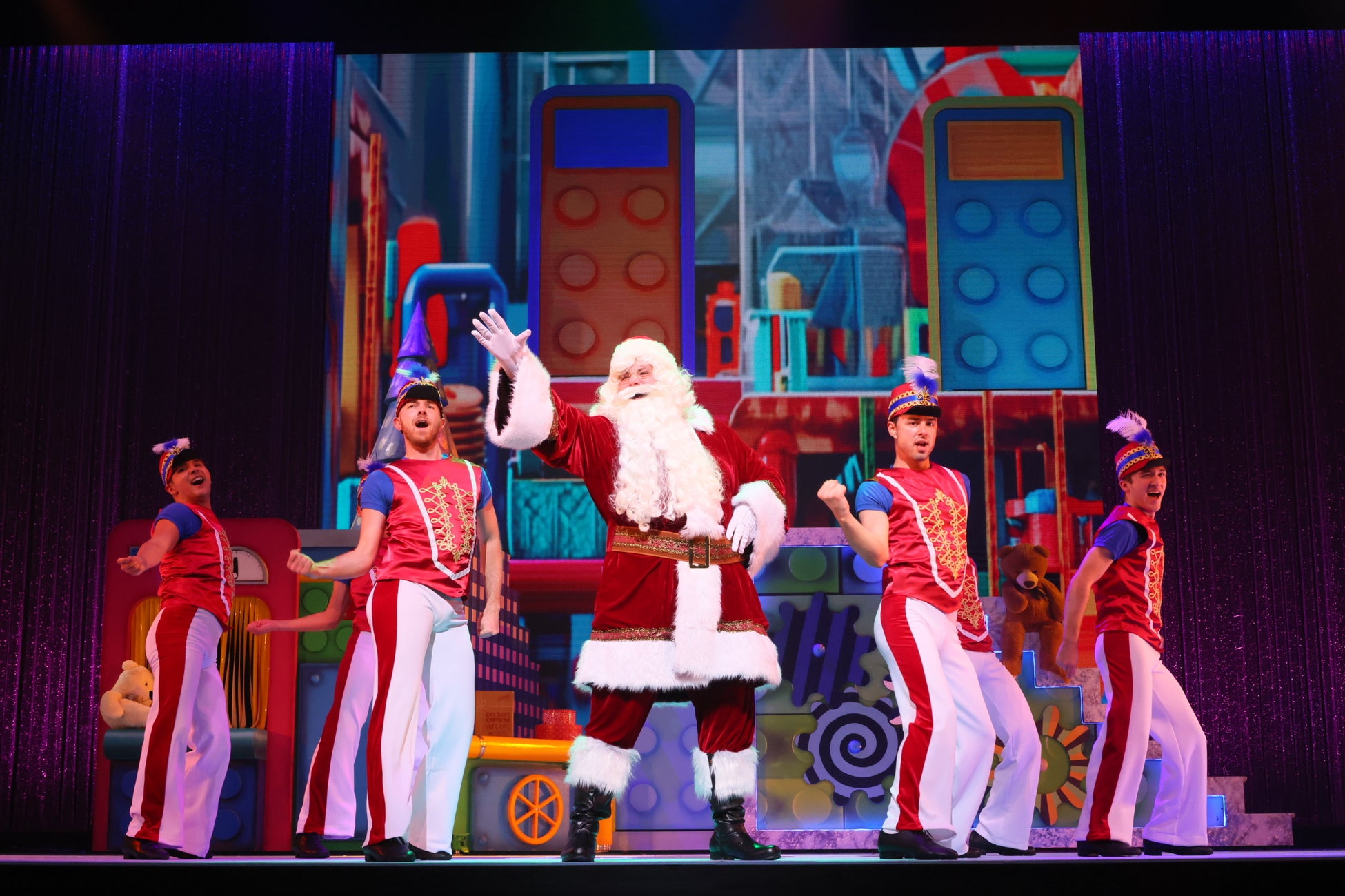 2幕はポップでカラフルなパーティーから。プレゼントが積まれたフロアで、ノリノリに。キャストたちはたびたび客席通路で歌い踊り、サンタが振りを教えてくれるコーナーがあるなど、観客も巻き込まれること請け合い。