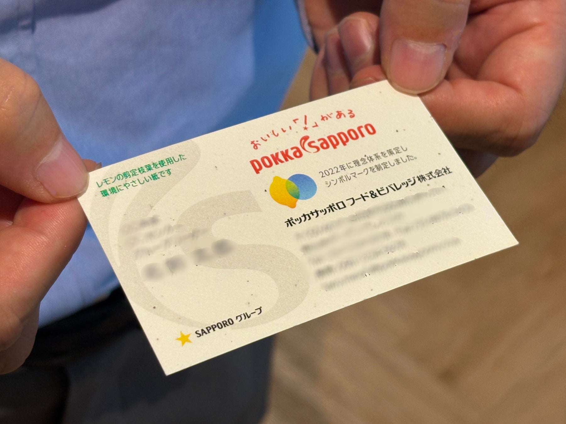 サッポロホールディングス(株)のグループ企業であるポッカサッポロフード&ビバレッジ株式会社(代表取締役社長:佐藤雅志、本社:愛知県名古屋市)は、環境保全の意識を高める世界環境デー(6月5日)および環境省が提唱する環境月間に合わせ、6月上旬から広島県大崎上島町の自社レモン圃場で発生するレモンの枝葉を混抄した(※1)「国産レモンペーパー」を活用し、当社社員による環境に配慮したアップサイクル名刺の試行を開始します。