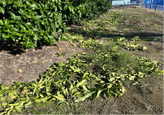 レモンの栽培において、植え付けから5年以上経過した木は、果実のなる部分が木の表面部分に偏り収穫量が少なくなるため、不要な枝を切る「剪定」が必要となります。これにより、木の内側の風通しや日当たりが良くなり、生育を促したり栄養分の分散を防ぎ、木の成長と豊富な収穫を図ることに繋がります。一方で、このような剪定された枝葉は人手不足等のため処理しきれず、そのままとなっているケースも少なくありません。