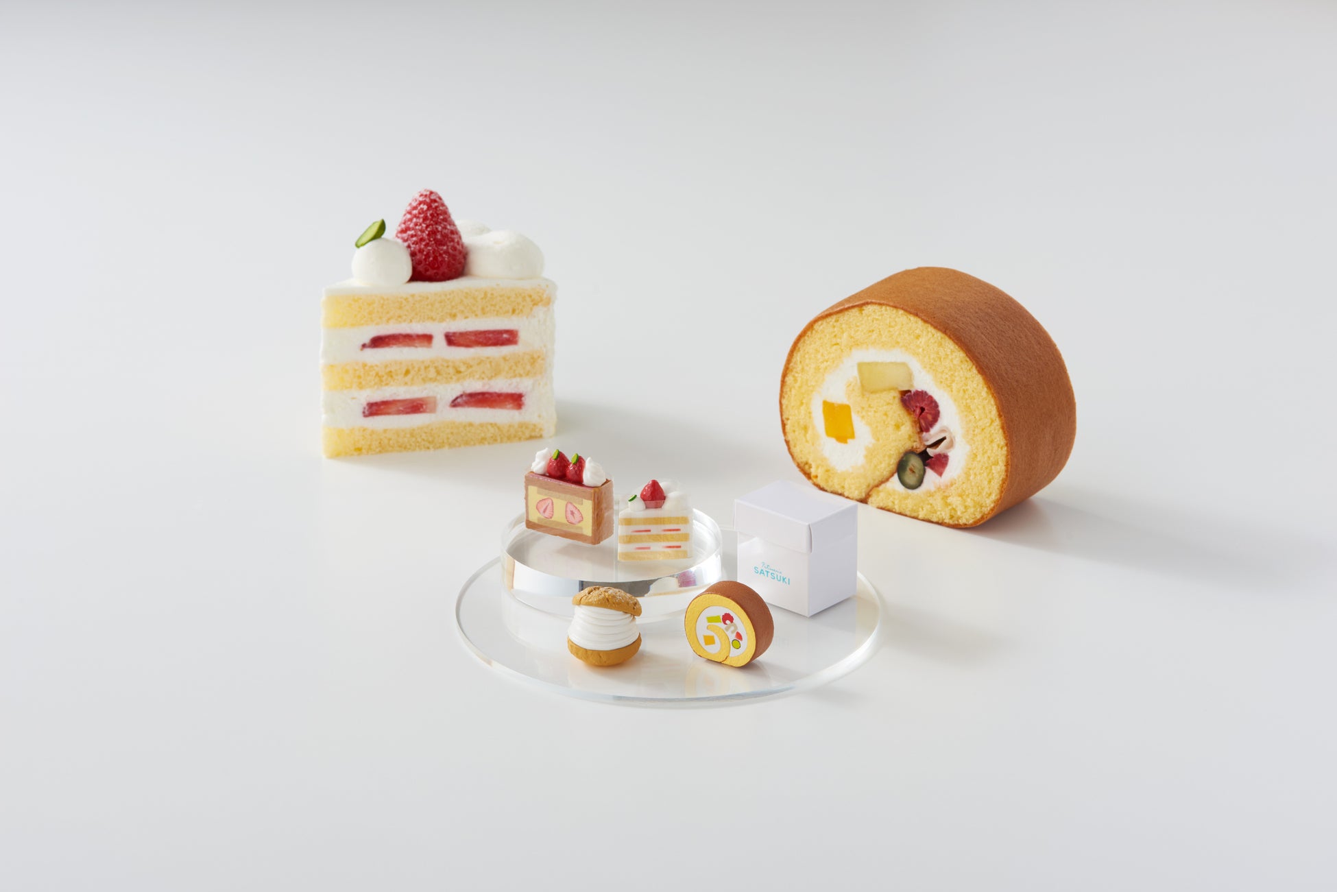 『ホテルニューオータニ パティスリーSATSUKIスイーツコレクション』は、フィギュアのスイーツが実在し、実際に味わえるのも醍醐味。ペストリーショップ「パティスリーSATSUKI」では、ミニチュアスイーツフィギュアのモデルとなったスイーツ6種類のすべてをお買い求めいただけます。中でもおすすめは、「スーパーシリーズ」がさらに進化を遂げた『新エクストラスーパーメロンショートケーキ』。通常のメロンは、1本の木から複数個のメロンを収穫するところを、『新エクストラスーパーメロンショートケーキ』に使用する静岡県産のマスクメロンは、1本の木から1つのみに絞り込み、その実にすべての栄養や美味しさを凝縮させた逸品。その直径約18cmのマスクメロンを惜しげもなく3分の1個分使用しています。そのほか、マスクメロンの味を最大限に引き出す、玄米を食べて育った鶏が産んだ「玄米卵」を使用したスポンジや、口当たりが軽やかな九州大牟田産生クリームを使用するなど、素材や製法にこだわり抜いた、まさに“エクストラ”なショートケーキです。