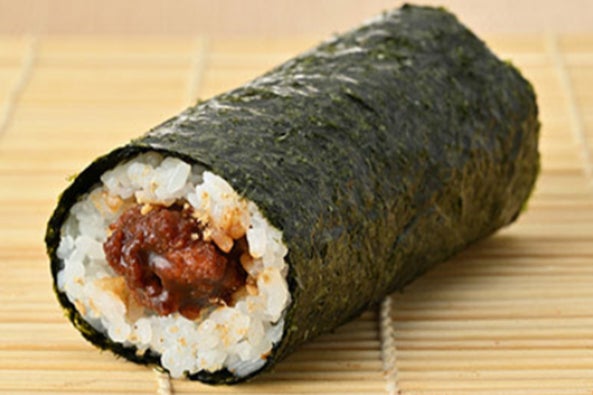 看板商品「黒毛和牛 牛めし」えお恵方巻に。秘伝のたれでふっくらと甘めに炊いた黒毛和牛肉を、ご堪能ください。