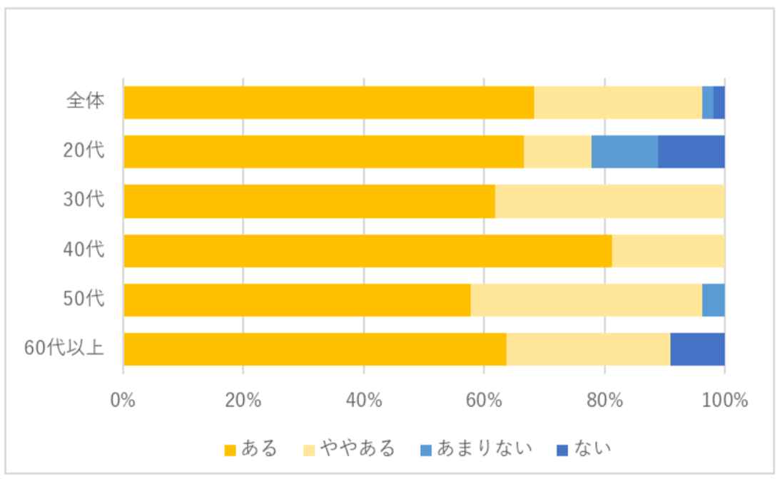 最も意識しているのは40代で、80%超が必要性を感じている。