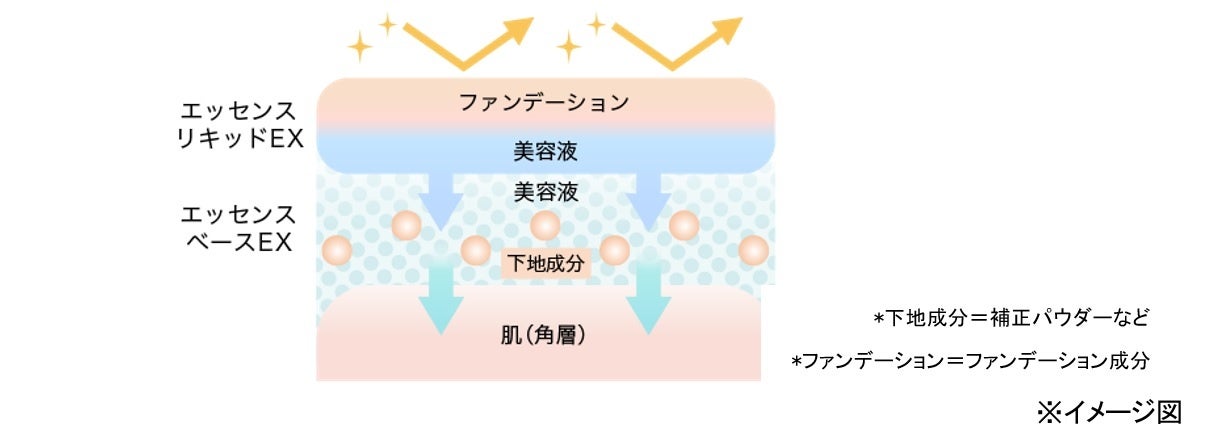 ◆マキアージュのファンデ美容液「エッセンスリキッド EX」と併用することで、美容液同士がふれあい、密着力と化粧もち効果がアップします。