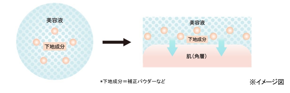 たっぷりの美容液で下地成分を包むから、美容液が肌に届く独自技術