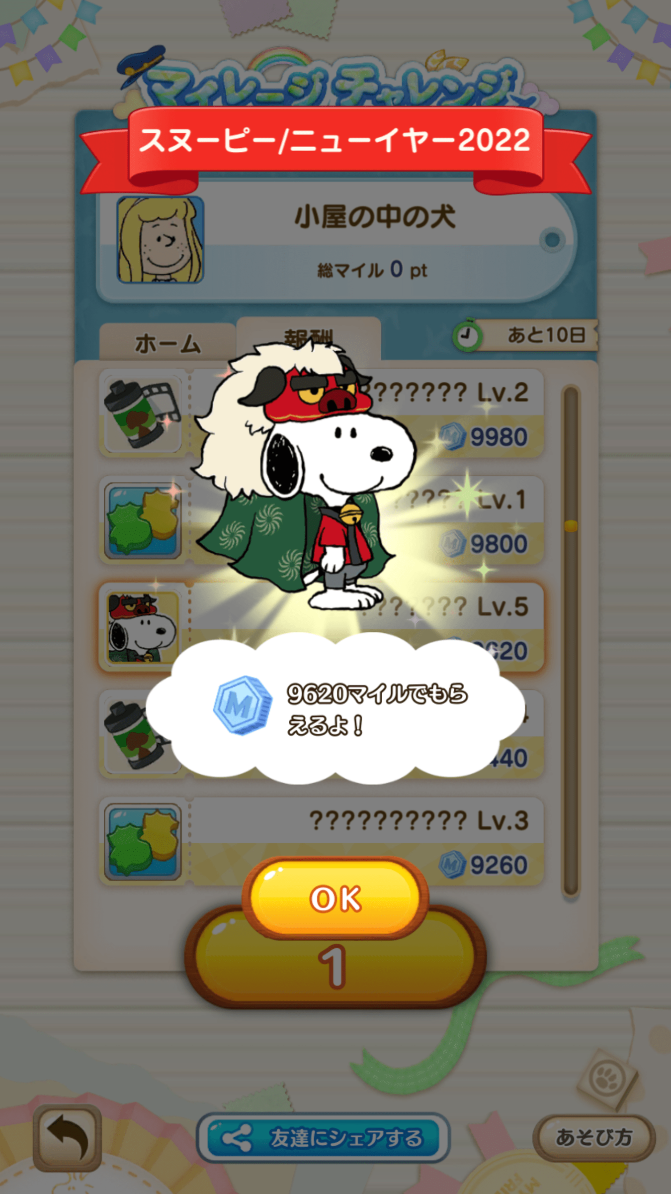 旅気分を味わえるイベントを遊んで、縁起の良い獅子舞スヌーピーをGETしてね。