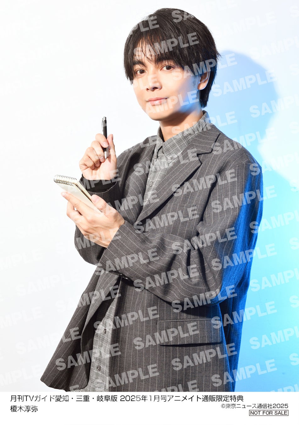 なお、アニメイト通販で「月刊TVガイド2025年1月号」を購入すると、特典として6種から1種選べる榎木淳弥の生写真がプレゼントされる限定企画も。作中のバディであるロンのイニシャルを持ったり…榎木の魅力が存分に楽しめるカットの数々を、ぜひチェック&ゲットしていただきたい。