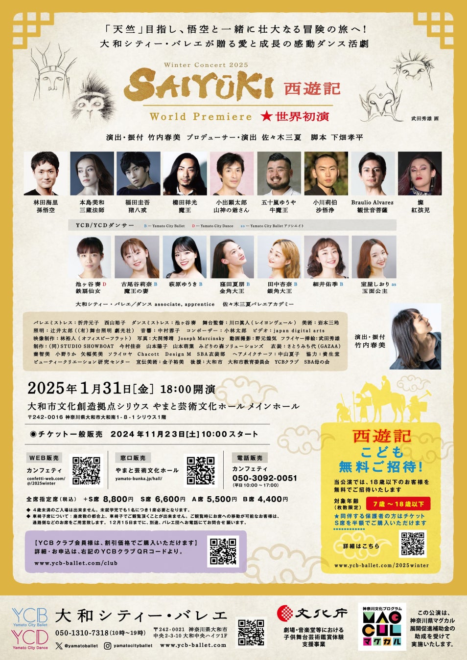 大和シティー・バレエ Winter Concert 2025『西遊記』が2025年1月31日 (金)にやまと芸術文化ホール メインホール(神奈川県 大和市 大和南 1丁目8−1 シリウス 1階)にて上演されます。