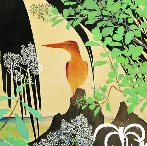 南国を象徴する鳥、アカショウビンを主題に描いた作品。
