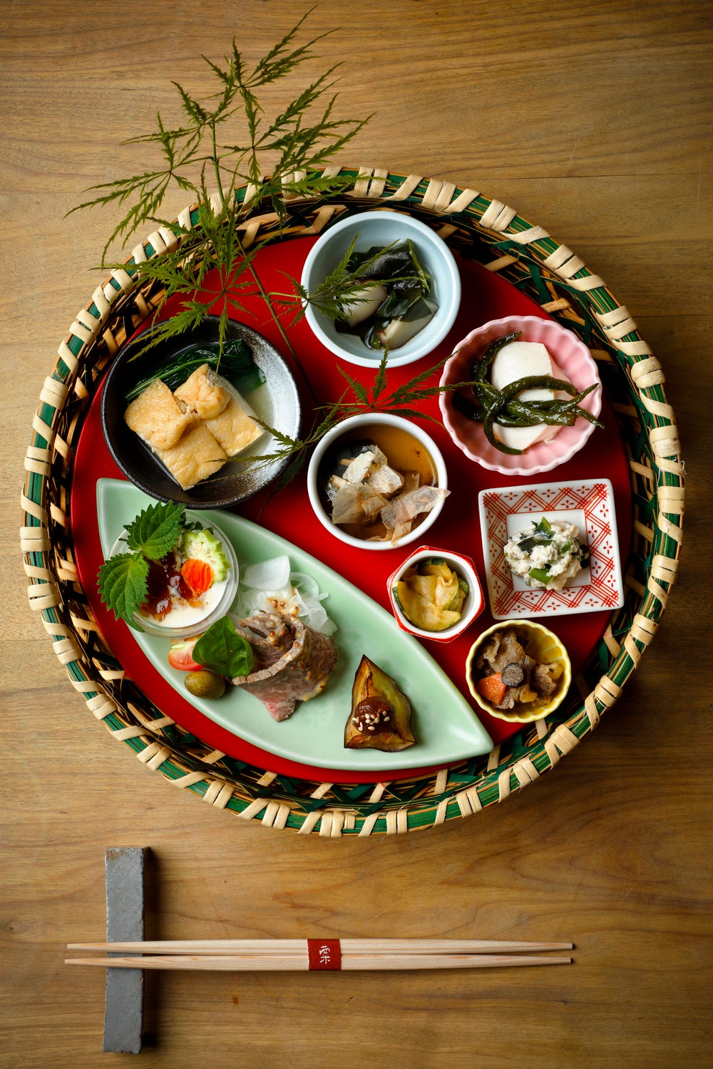 築140年の古民家を改装した「粟 ならまち店」。夜のコース「大和牛と野菜」の前菜として出される籠盛。