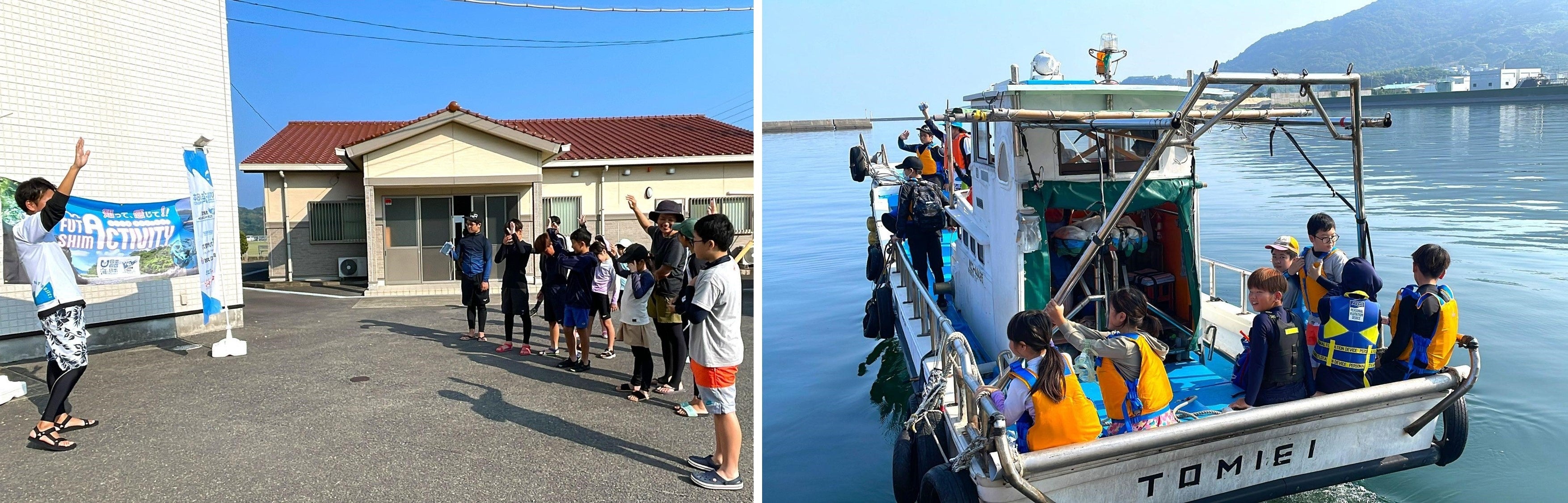 開会式で「二島に行ったことがある人はいますか?」と問いかけると、ほとんどの参加者から「行ったことがない」と答えが返ってきました。「二島は海の透明度や住んでいる生き物など、海の環境が違うので、普段見ている大村湾との違いを感じながらアクティビティを楽しんでください」と伝え、船に乗り込み二島へ出発しました。