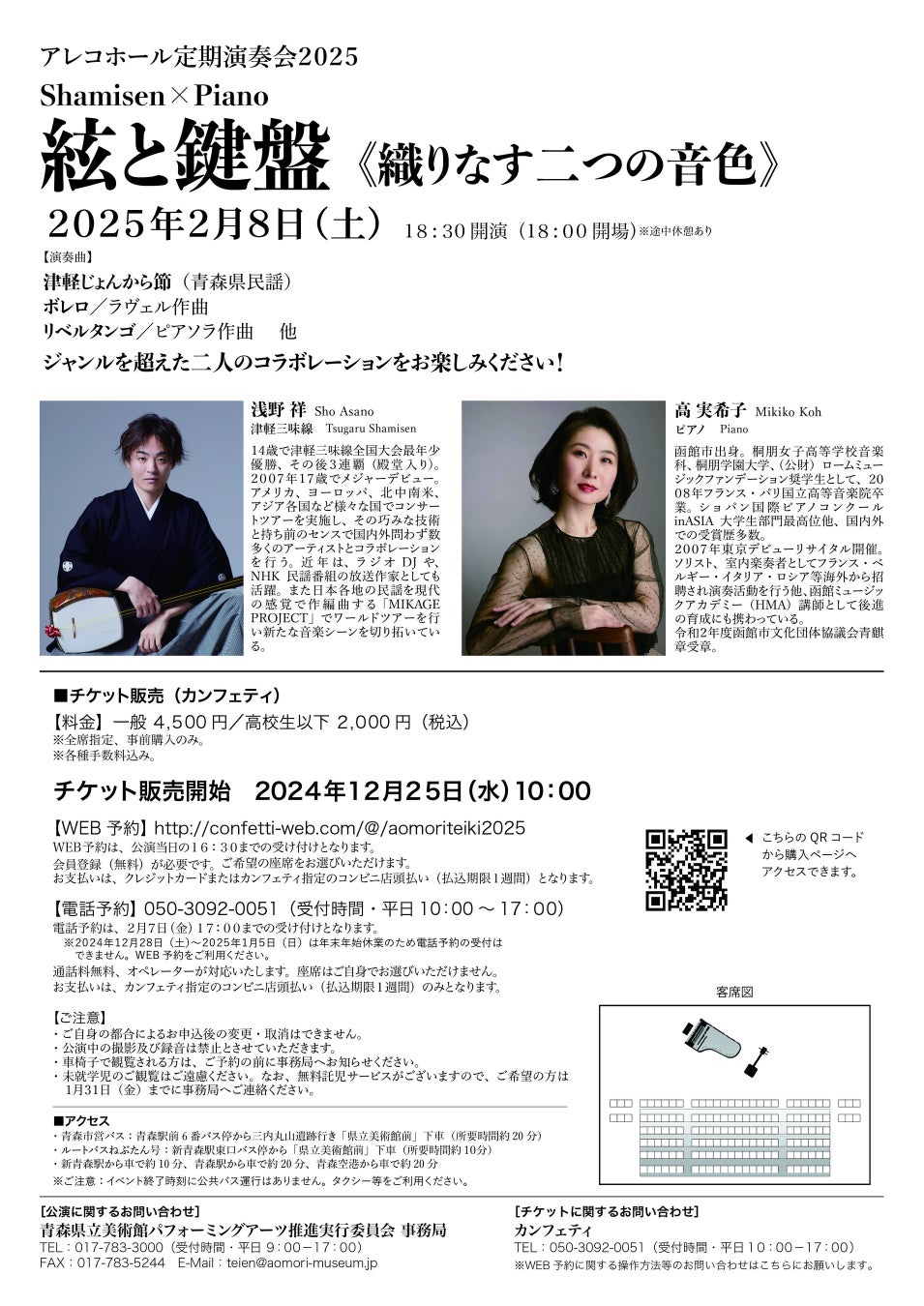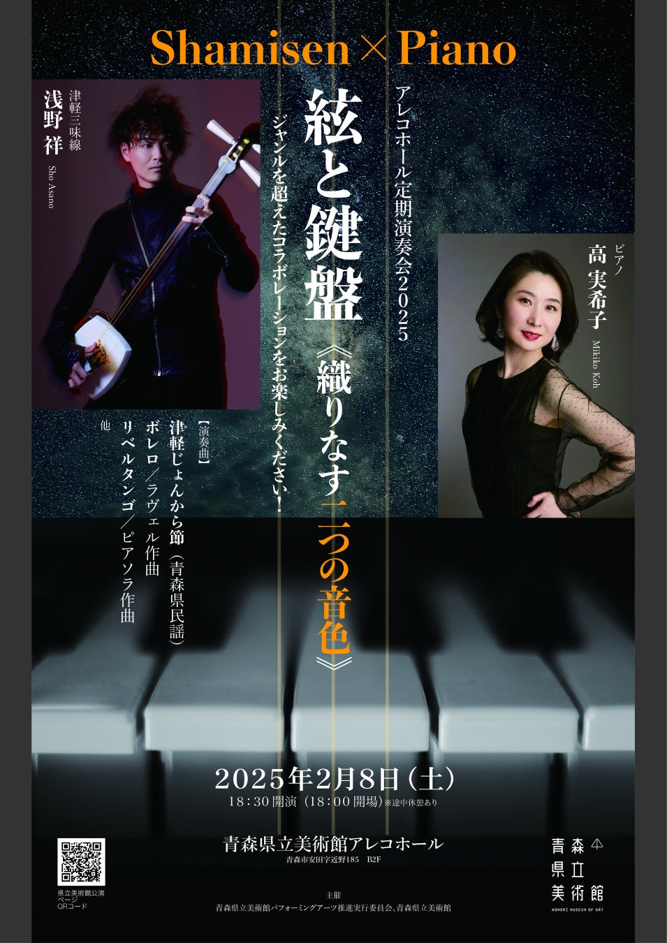 津軽三味線とピアノの異色コラボが生む唯一無二の音色! 青森県立美術館アレコホール定期演奏会2025チケット販売開始