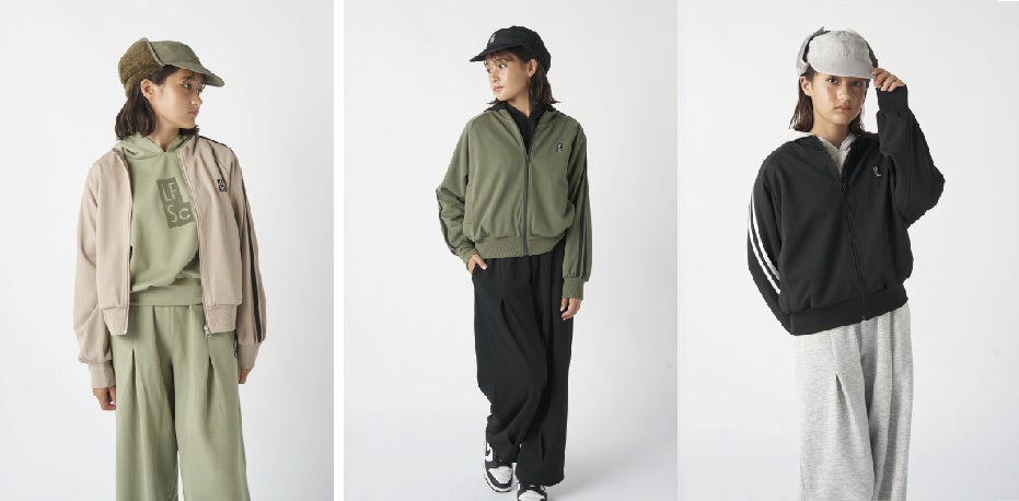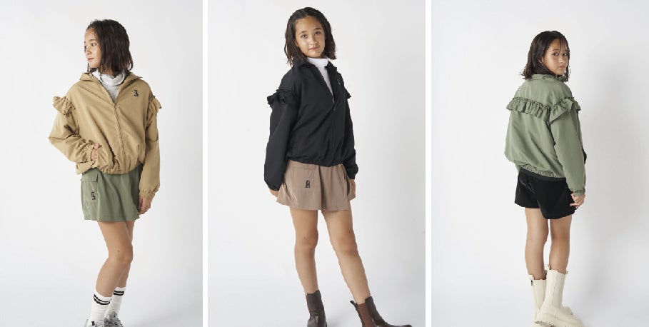 スポーツウェアやアウトドアウェアのように動きやすさと機能性を兼ね備えた、普段の通学に使いやすいアクティブウェアを展開。アクティブの中に、ちょっとクールでモードなテイストに昇華させるLOWRYS FARMジュニアらしさを表現。